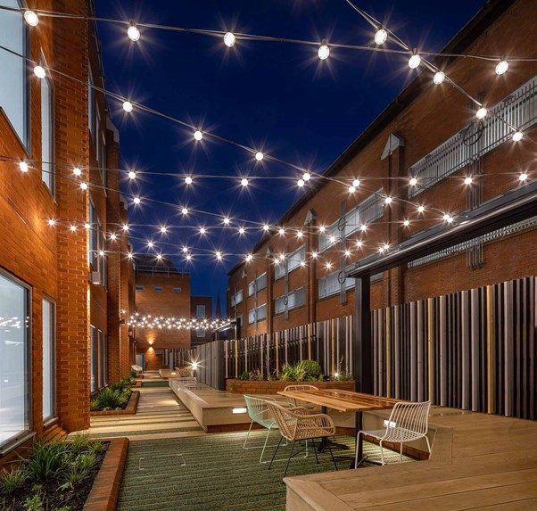 The development comprised the refurbishment of an existing 3-storey office building located above existing ground floor retail units. The scheme also included a rear external courtyard for breakout and relaxation. We were asked by the Electrical Installation Engineers to design and supply the lighting for the courtyard area.